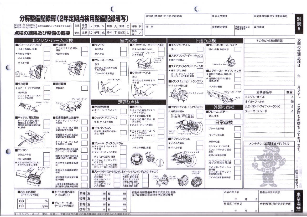 国土交通省から認定された整備資格を持った認証・指定工場で分解整備を行った証です。 |